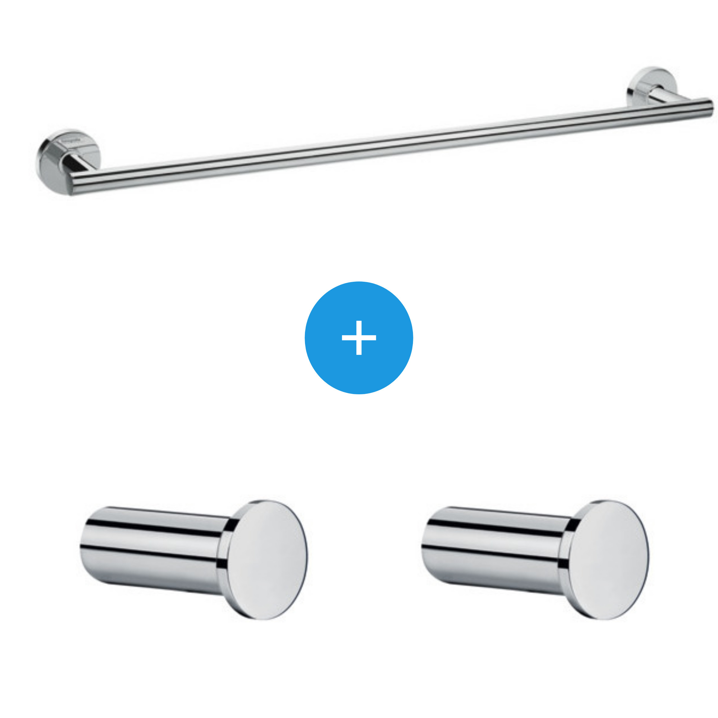 Hansgrohe Pack Logis Universal bath towel rail + two towel hooks, Chrome (41716000-TRIOLOGIS)
