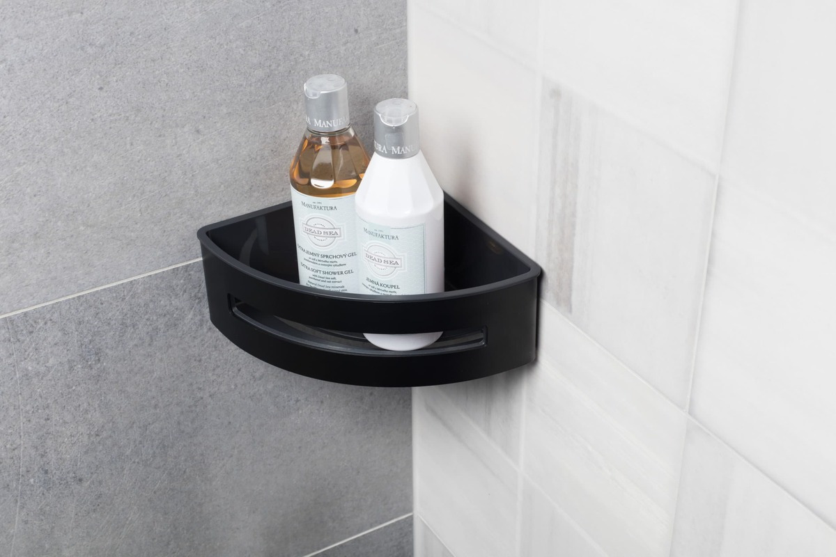 Swiss Aqua Technologies Corner shower basket 16,5cm in stainless steel, Black (SATDPOLROHMC)