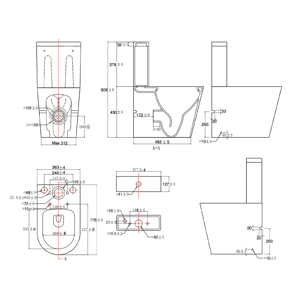 Features of the close coupled Toilet + Soft-Close Seat (SATBRE031RREXVPSN):