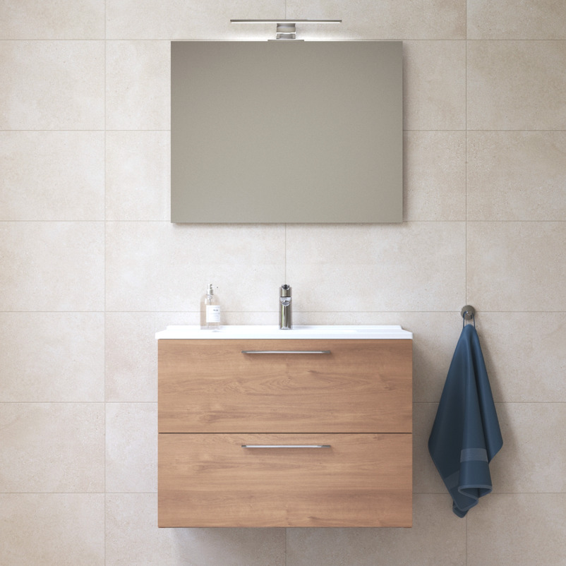 The Mia MIASET80D vanity is both functional and aesthetic. Its minimalist and clean style, combined with its oak finishes, will be perfect for a bathroom inspired by Scandinavian or Japandi styles. However, take advantage of the benefits of a bathroom vanity and optimize your bathroom space with a ceramic washbasin and 2 drawers with soft closures and chrome handles.