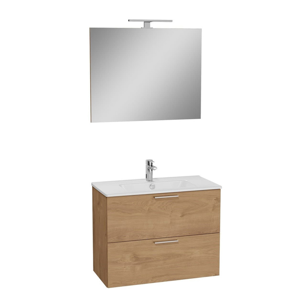 Vitra Mia Bathroom Unit, Mirror, Washbasin, and LED Lighting, 79 x 61 x 39.5 cm - Oak (MIASET80D)