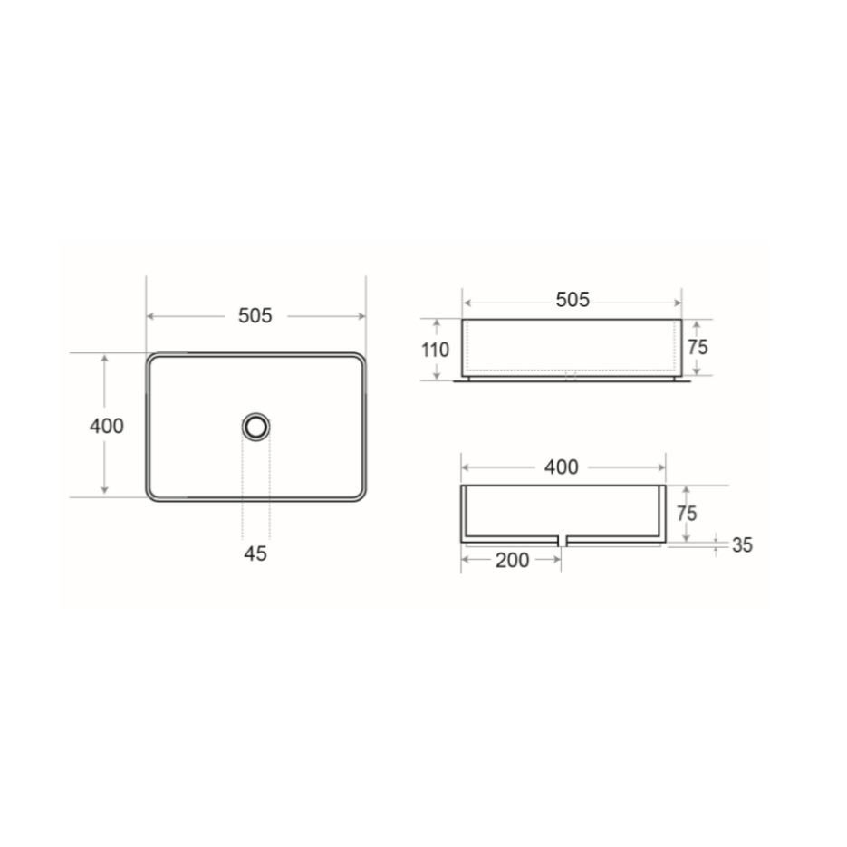 Features of the Infinitio countertop basin without overflow 50 x 40 x 11 cm, Matte white (SATINF5040M):