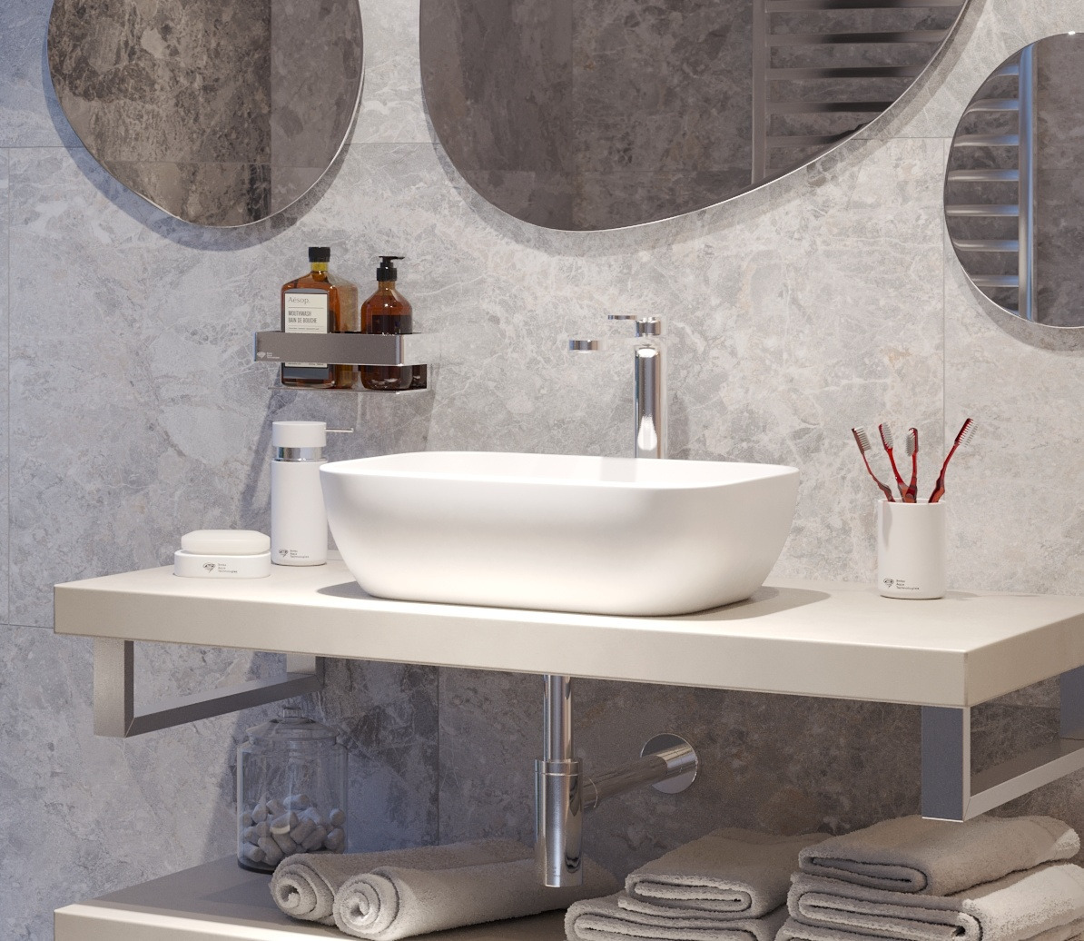 Infinitio countertop basins are manufactured differently from standard ceramic basins. In their production, a different material and a much higher firing temperature are required. Thanks to this, it is possible to achieve a thinner wall and at the same time retain all the good properties of the ceramic.