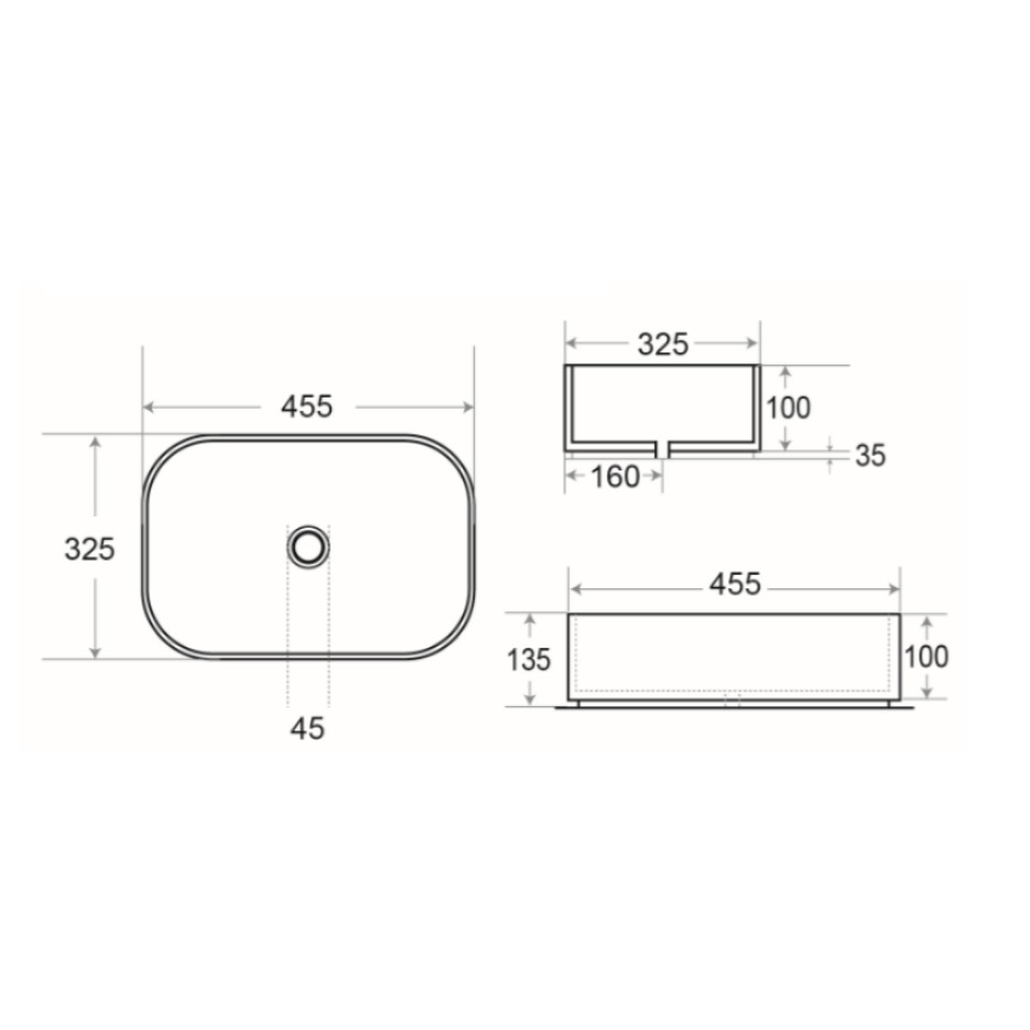 Features of the Infinitio countertop basin without overflow 45,5 x 32,5 x 13,5 cm cm, Matte white (SATINF4532M):