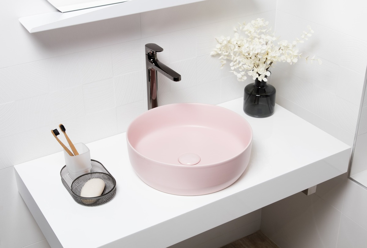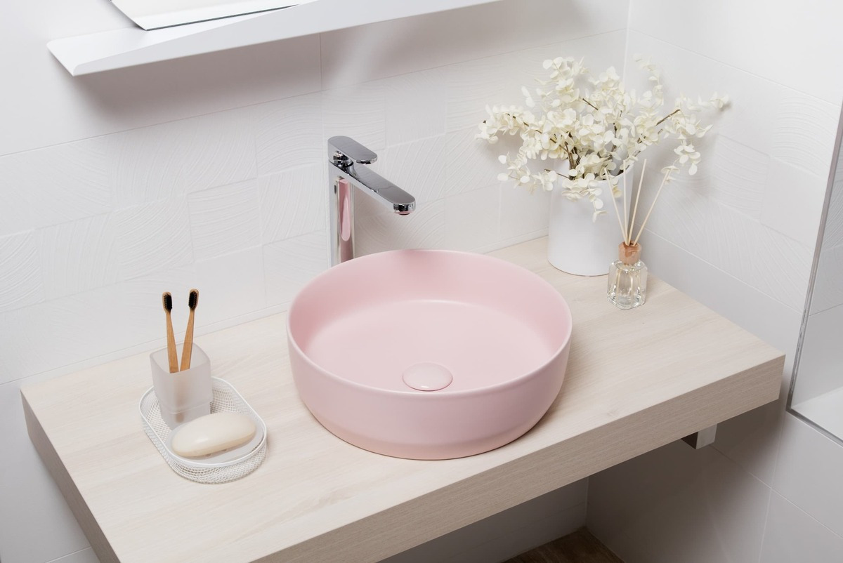 Features of Countertop basin Infinitio 39 x 39 x 12 cm without overflow, pink matt (SATINF3939PM) :