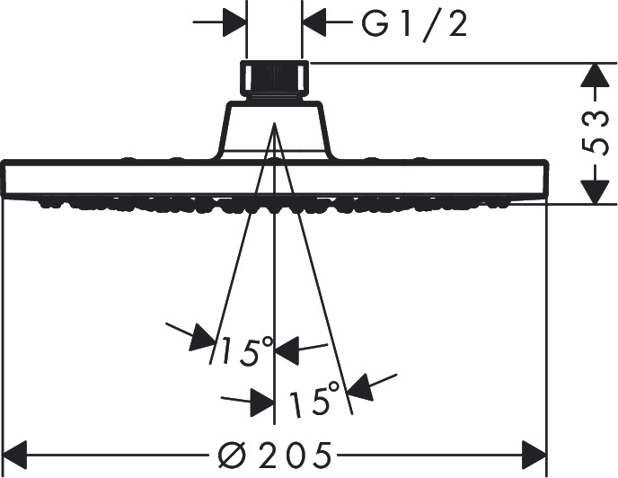 - Shower head size: 205 mm