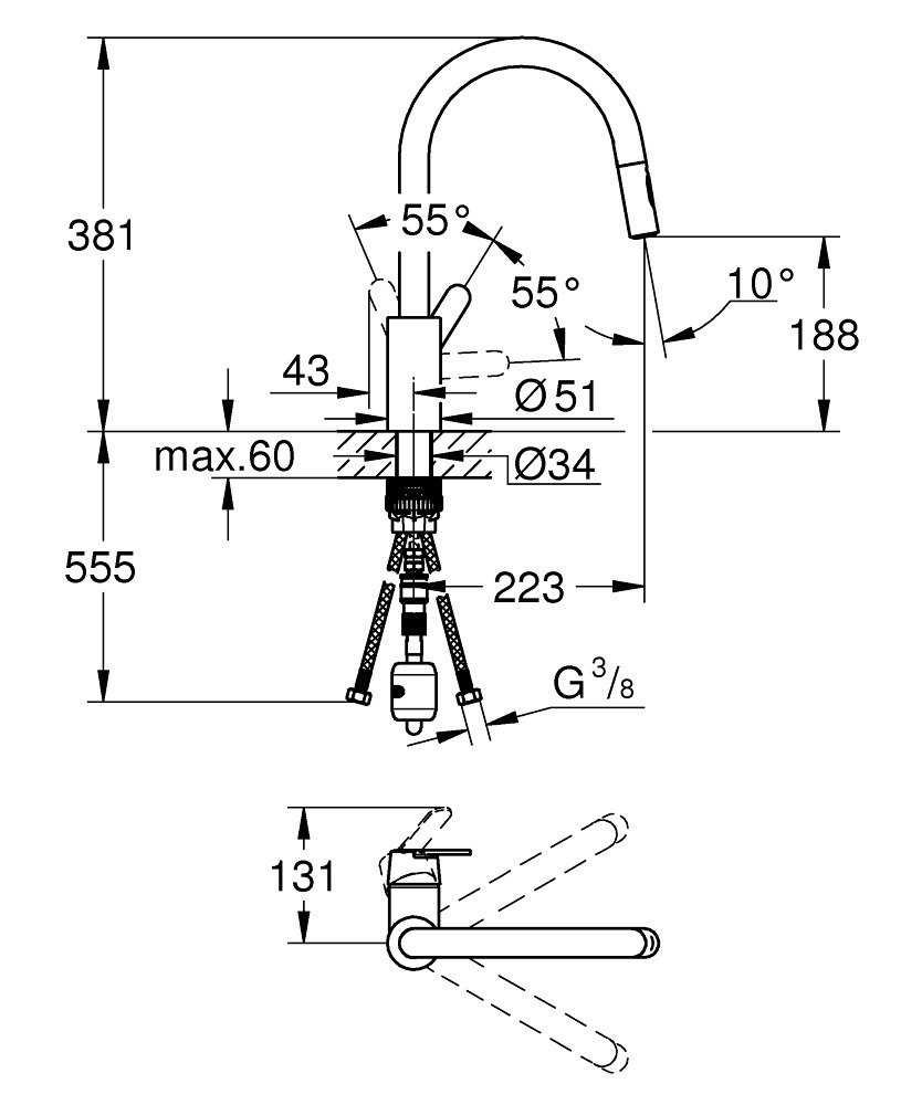 - GROHE EasyDock ensures that your hand shower or pull-out mousseur is securely in place