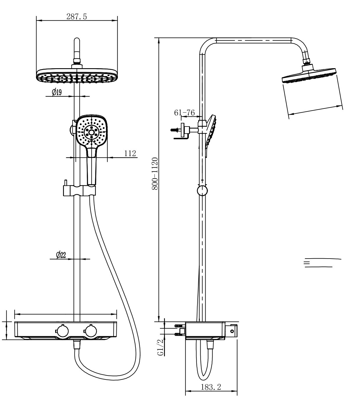 - Thermostatic mixing valve with child safety lock at 38°C. The thermostat allows you to easily set the temperature and maintain it during the shower