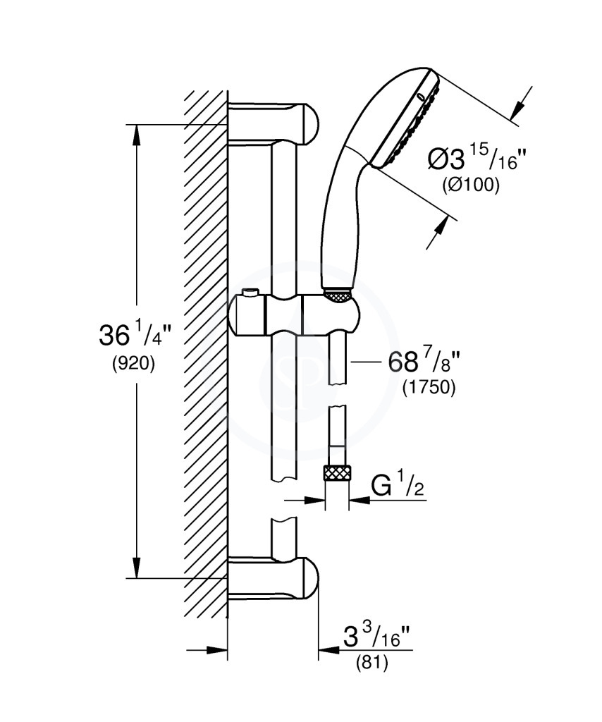 - Shower rail Tempesta 900 mm