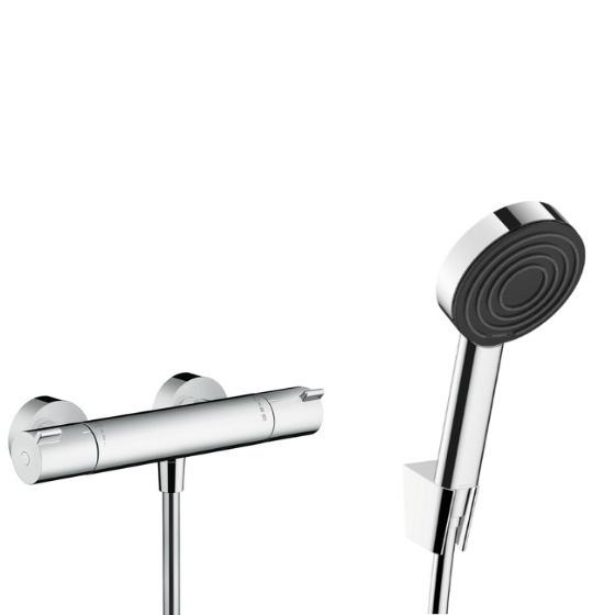 Hansgrohe Ecostat set Thermostatic shower mixer+3 jets Hand shower XXL 105mm + Shower hose 125cm and holder, Chrome (13211000-Pulsify)