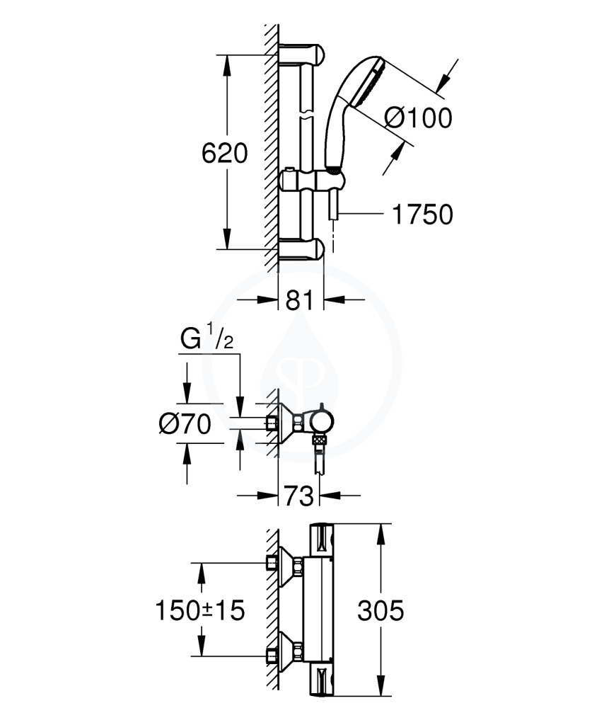- Grohtherm 800 thermostatic shower mixer 1/2" : (34 558 000)