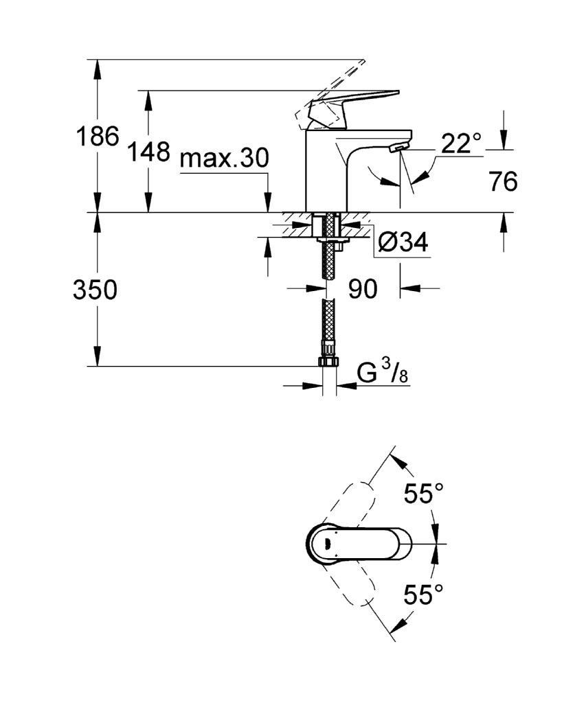 Grohe Eurosmart Cosmopolitan Basin mixer 1/2"S-Size, Chrome (32824000)