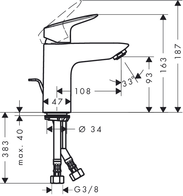 - Consists of: single lever basin mixer, waste set