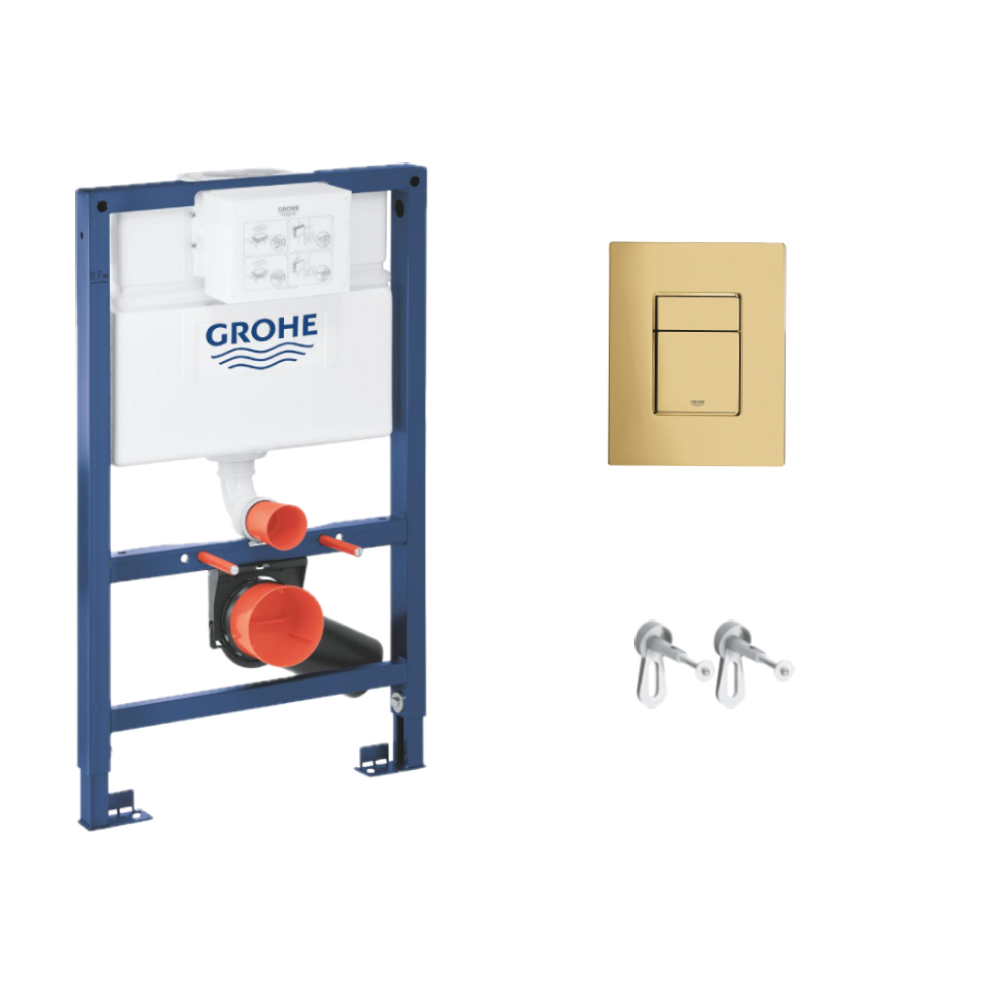 Grohe Toilet Pack 0.82m Low-Height Rapid SL Support Frame + Gold Mirror Effect Flush Plate + Fixings (38526000-gold)