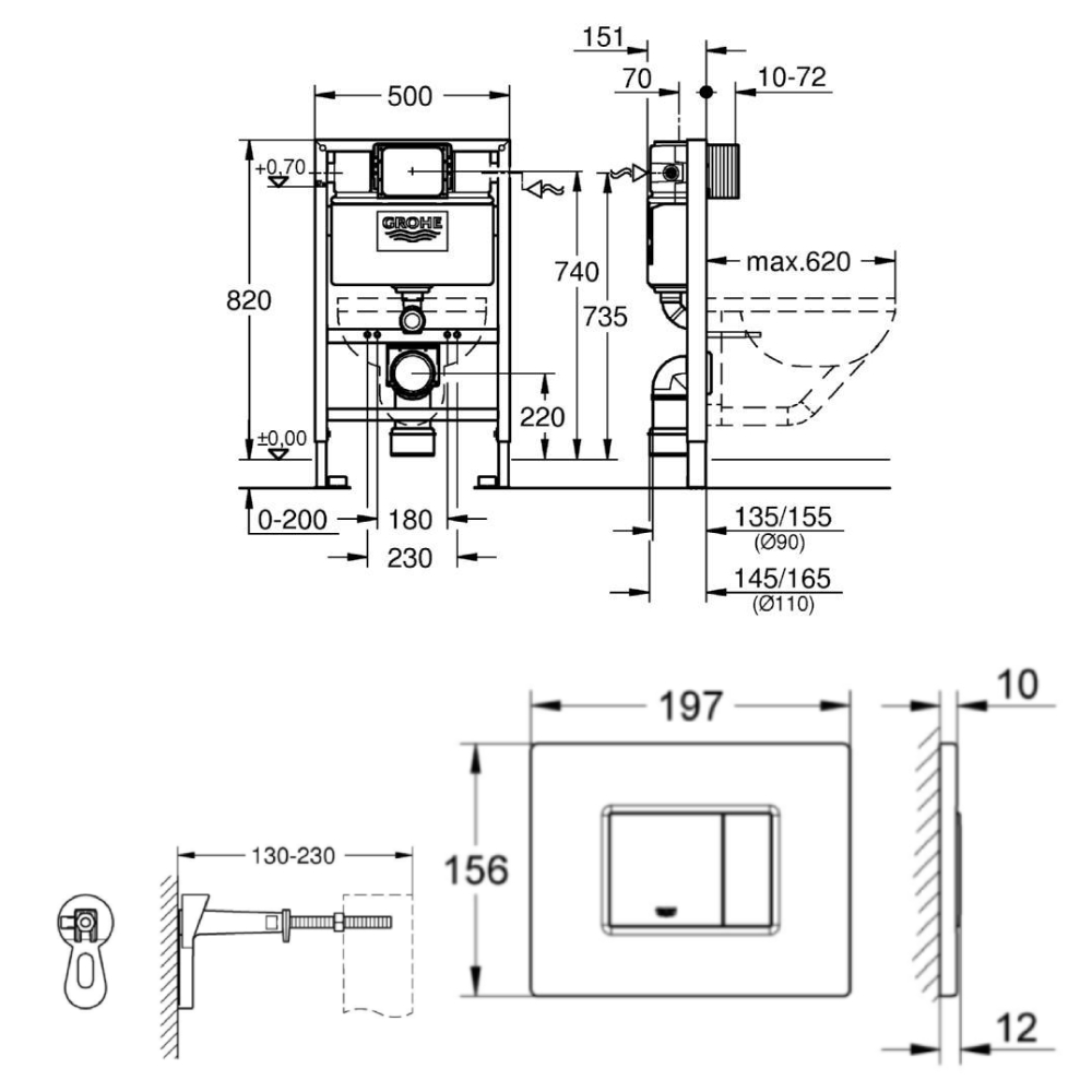 - Grohe Rapid SL Low-Height Toilet Frame, 0.82 m (38526000)