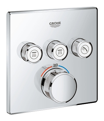 Features of the Grohe Grohtherm SmartControl (29126000) 3-outlet concealed thermostatic mixing valve: