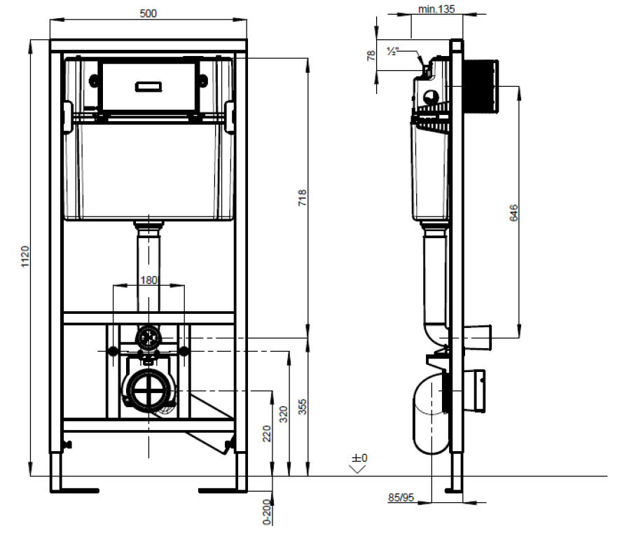 - Concealed cistern with condensation insulation with dual flush 3/6l