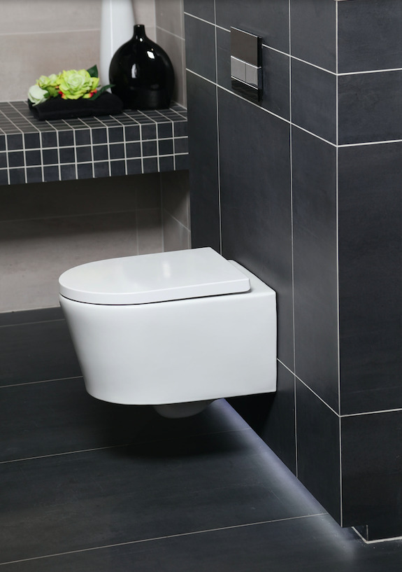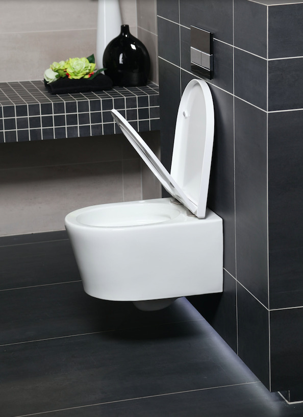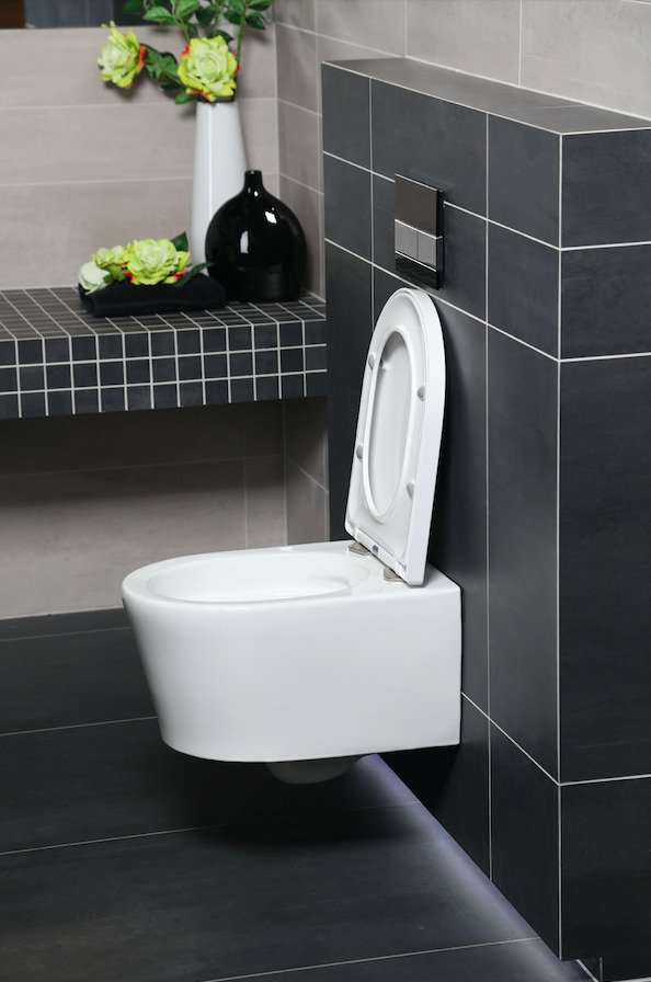 - Swiss Aqua Technologies Rimless wall-hung toilet bowl with invisible fixings + soft-close seat (SATrimless)