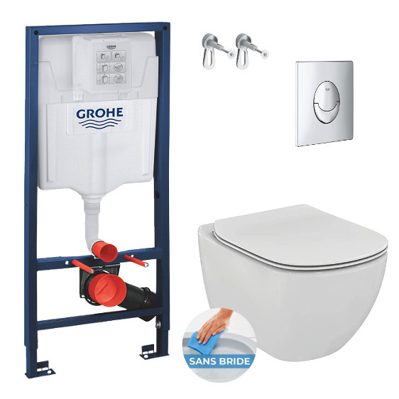 Features of the Toilet set GROHE Rapid SL + Ideal Standard Tesi Aquablade rimless bowl + Grohe Skate Chrome flush plate (GROHEAQUASET2) :