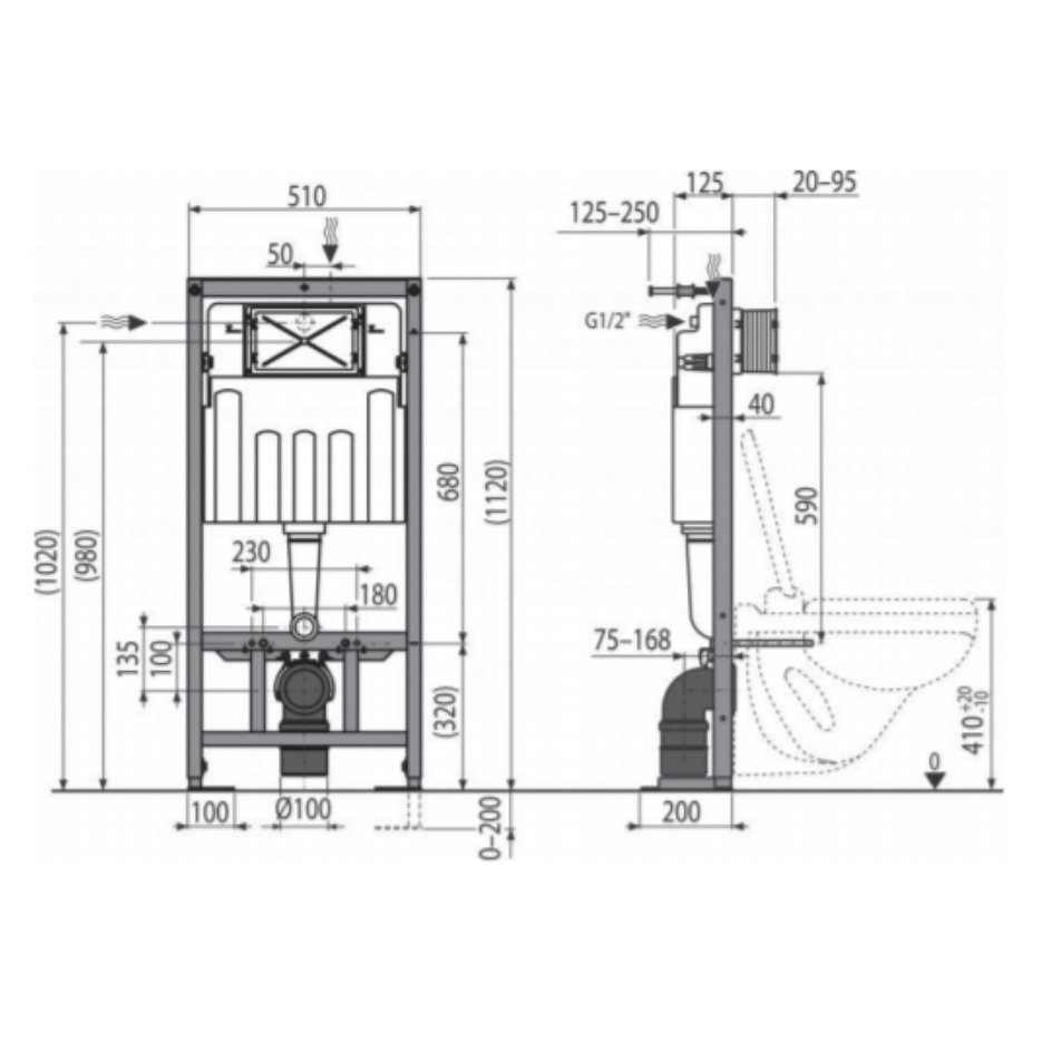 - For installation of wall-hung toilet bowls with a connection pitch of 180 mm or 230 mm