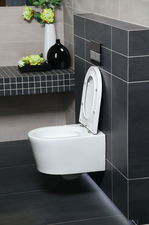 - Swiss Aqua Technologies Rimless wall-hung toilet and invisible fixings + softclose seat (SATrimless)