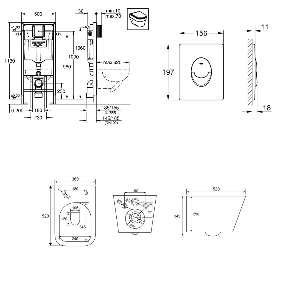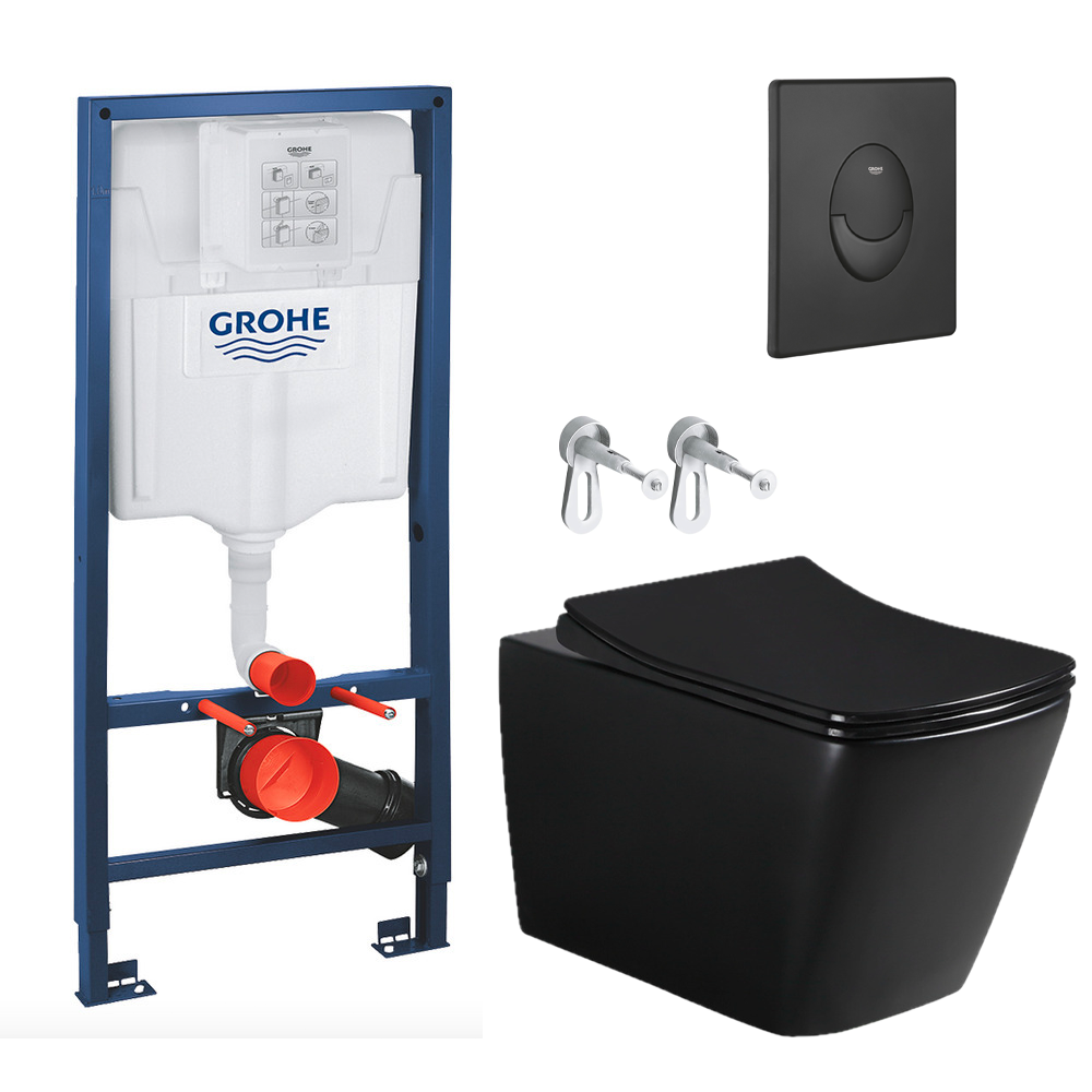 Features of Grohe Toilet Pack Rapid SL Frame + Square Infinitio Matt Black Rimless Toilet + Matt Black Flush Plate (RSL-SquareBlackInfinitio-KF02):