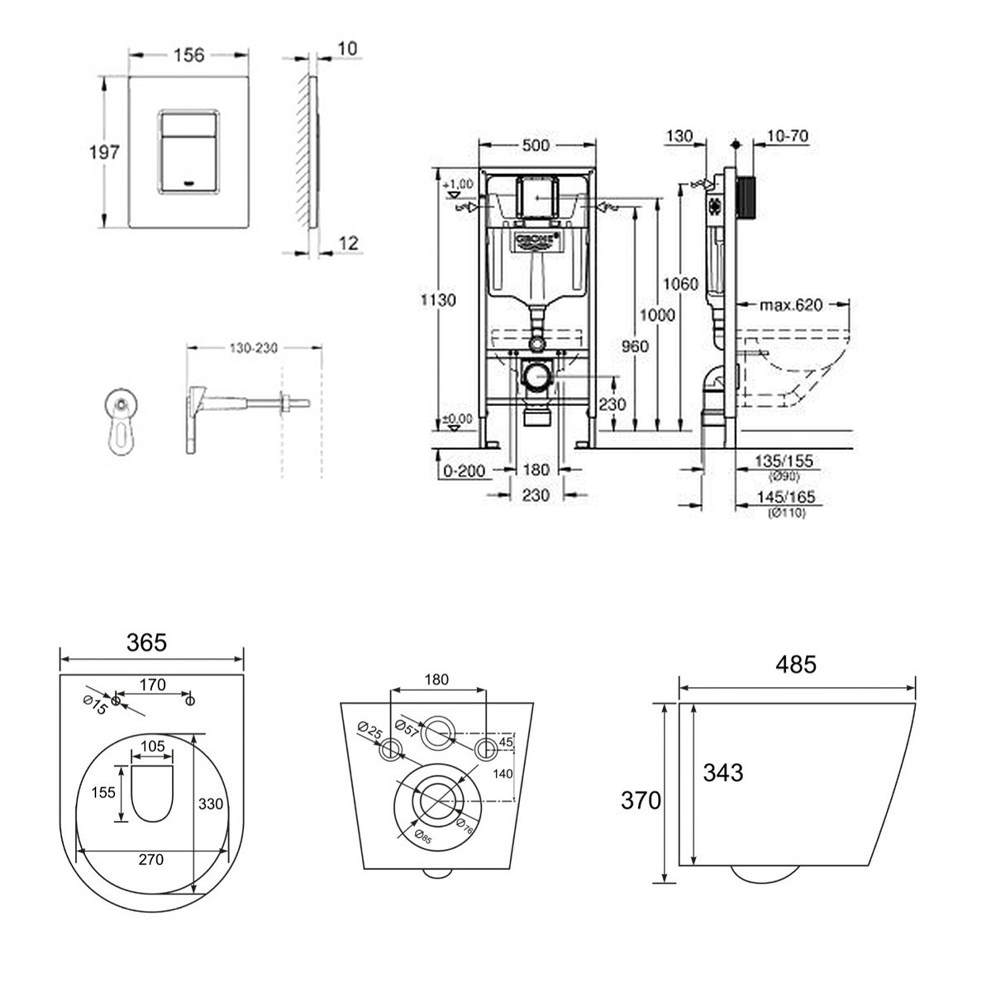 Features of Grohe Toilet Pack Rapid SL Frame + SAT Rimless Toilet + Chrome Flush Plate + FREE Toilet Brush (RapidSL-Infinitio-1-Flex1):
