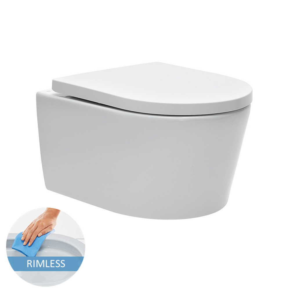 SAT Rimless Wall-Hung Toilet with invisible fixings + soft-close seat (SATrimless):
