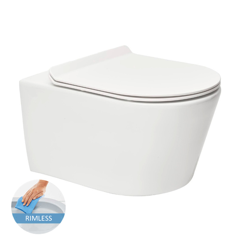 - Swiss Aqua Technologies Brevis Rimless Wall-Hung Toilet with Concealed Fixings and Ultra-Thin Soft-Close Seat (BrevisRimless)