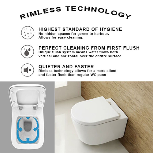 - Swiss Aqua Technologies Wall-hung rimless bowl with invisible fixings + softclose seat (SATrimless)