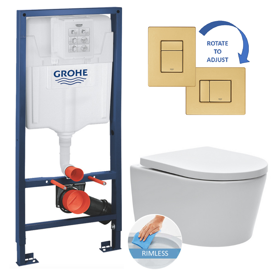 Grohe Toilet set Grohe Rapid SL frame + SATrimless bowl + Grohe brushed gold Skate Cosmopolitan flush plate (RapidSLSAT-bgold)