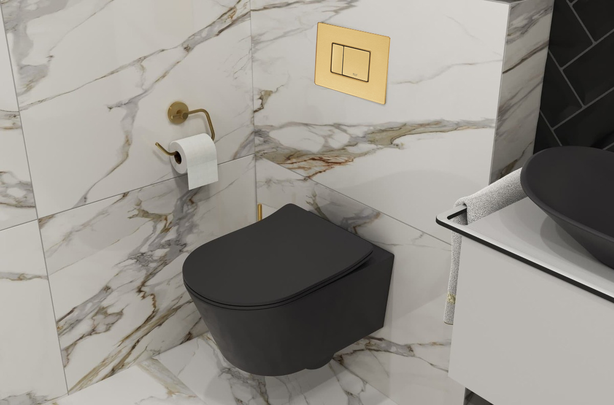 Features of Toilet Pack Grohe Rapid SL Frame + Black SAT Rimless Toilet + Grohe Gold Mirror Effect Flush Plate (RapidSLBlackSAT-gold):