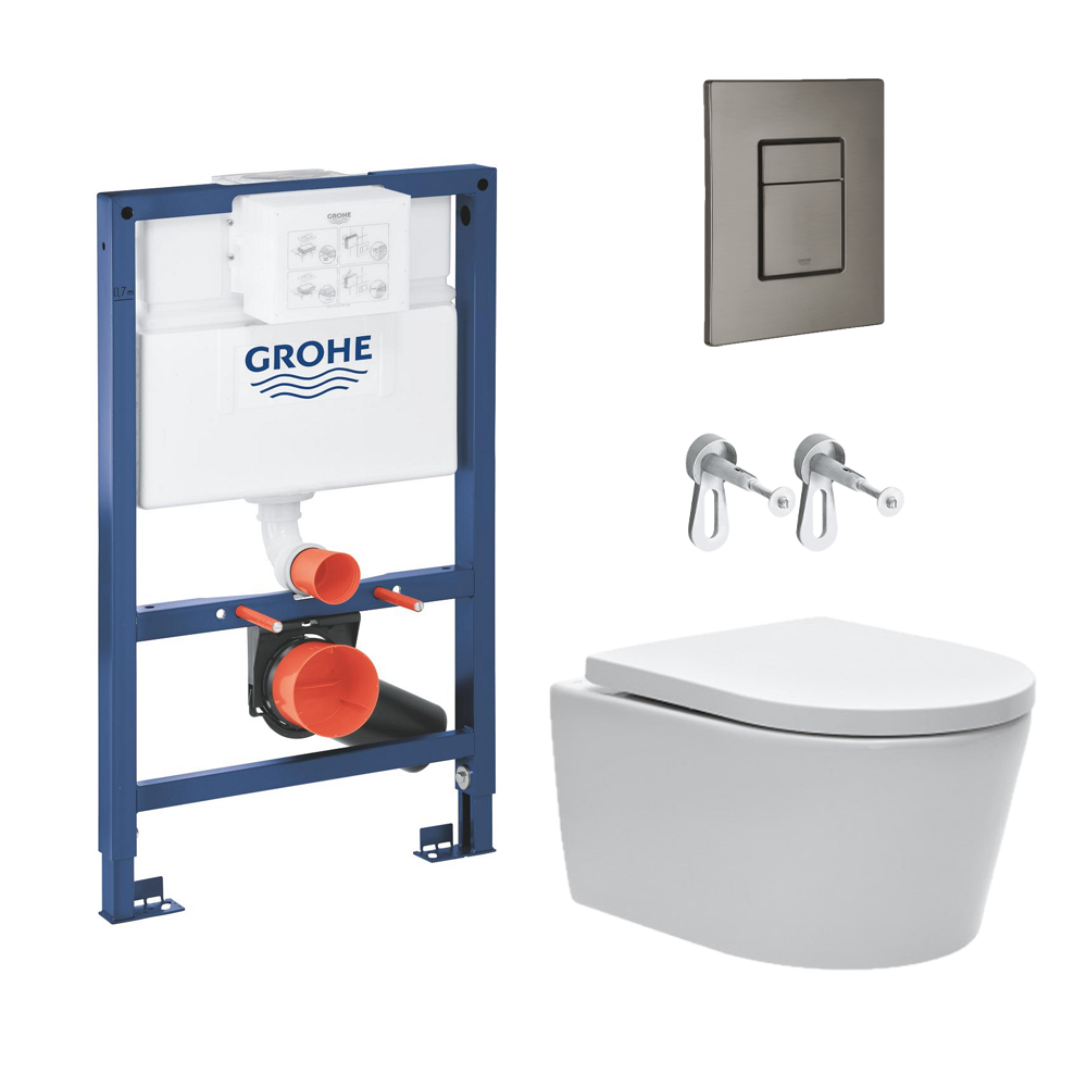 Grohe Toilet Pack Grohe Rapid SL Frame 0.82 m + SAT Rimless Toilet + Grohe Brushed Hard Graphite Flush Plate (RapidSLSAT-AL0-82)