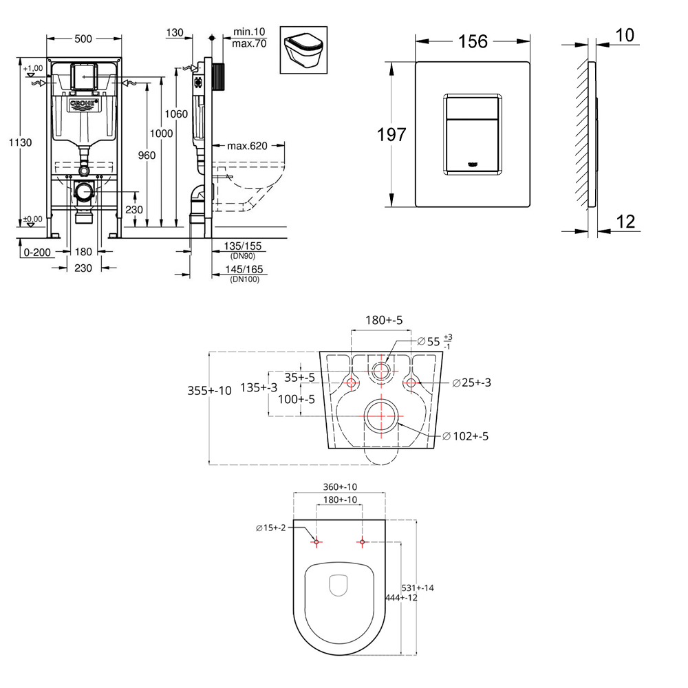 Grohe Toilet Pack Rapid SL Frame + SAT Brevis Rimless Toilet with Soft-Close Seat + Matt Black Flush Plate (RapidSL-Brevis-KF0)