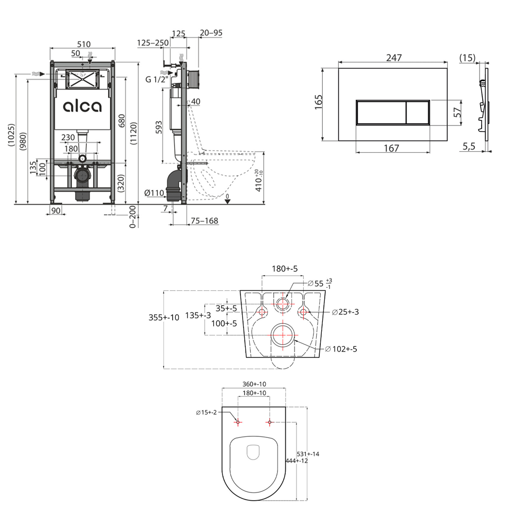 - Compatible with all Alcaplast installation systems and pre-wall cisterns