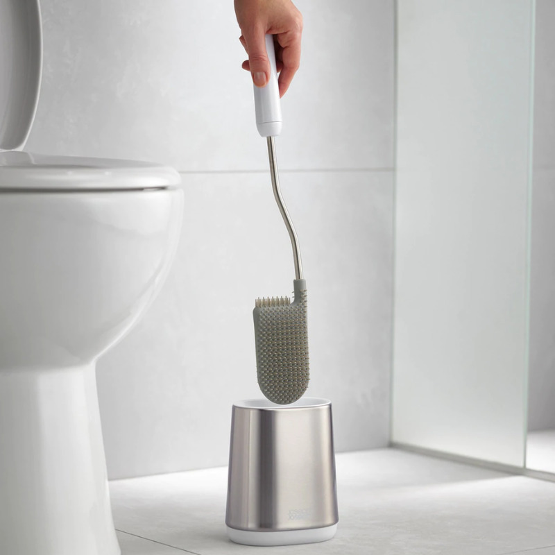 Joseph Joseph Flex™ Lite Steel Anti-drip toilet brush with compact stainless steel anti-fingerprint holder, Grey (70561)