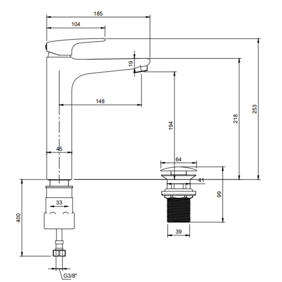 Villeroy & Boch O.Novo Start Single lever basin mixer, XL, With waste,Chrome (TVW10510511061)